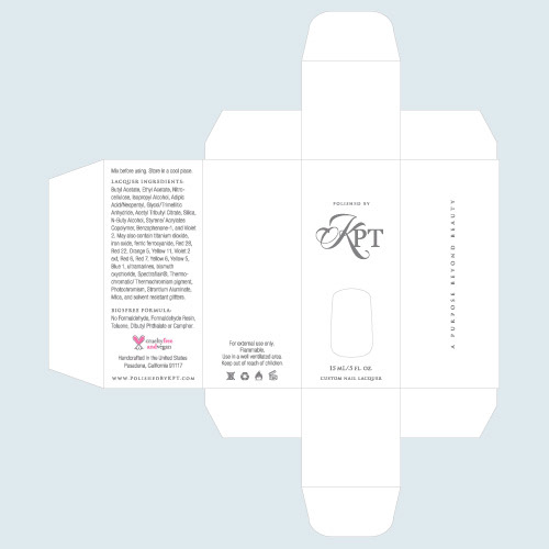 Polished by KPT box packaging design. We decided to go with a nail shape die cut window to display the beautiful colors of each bottle. The white box and metallic silver ink helps focus the attention to the die cut window.